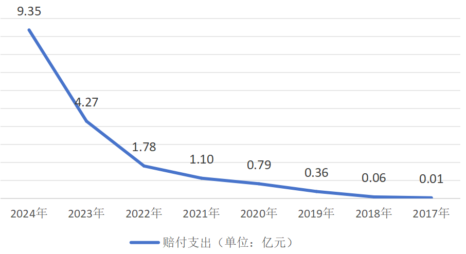 然而,“网红”效应带来的不只是品牌知名度,还有与日俱增的赔付压力。从已公布的2017-2024年年度报告看,华贵人寿的赔付支出在过去八年间增长近千倍。