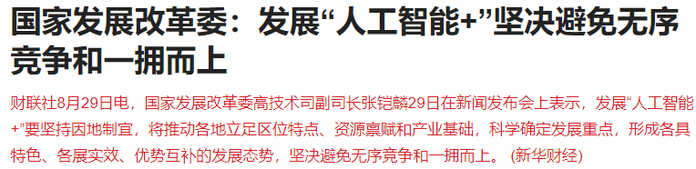 国家发展改革委高技术司副司长张铠麟29日在新闻发布会上表示,发展“人工智能+”要坚持因地制宜,将推动各地立足区位特点、资源禀赋和产业基础,科学确定发展重点,形成各具特色、各展实效、优势互补的发展态势,坚决避免无序竞争和一拥而上。