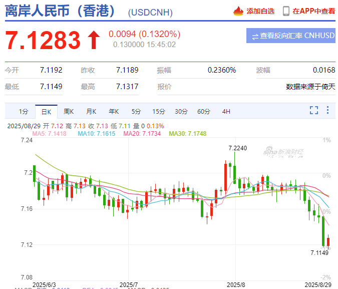 近期人民币汇率持续走强,离岸人民币一度升破7.12关口,美元指数是一方面,A股牛市吸引外资进场也是重要原因。但如果汇率持续升值,对出口不利,看央行出不出手。