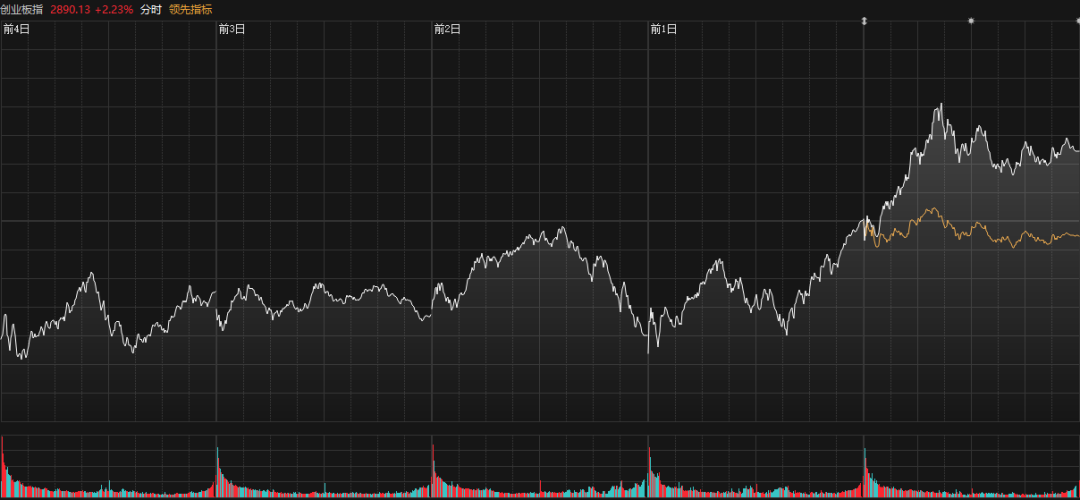 下图是创业板指本周五个交易日的分时图,其中周一、周三、周四的成交额都破了3万亿,但看k线能看出,这三天都不是传统的“高开高走”强势图形,而是盘中都有大跳水,然后有资金抄底拉起来的。
